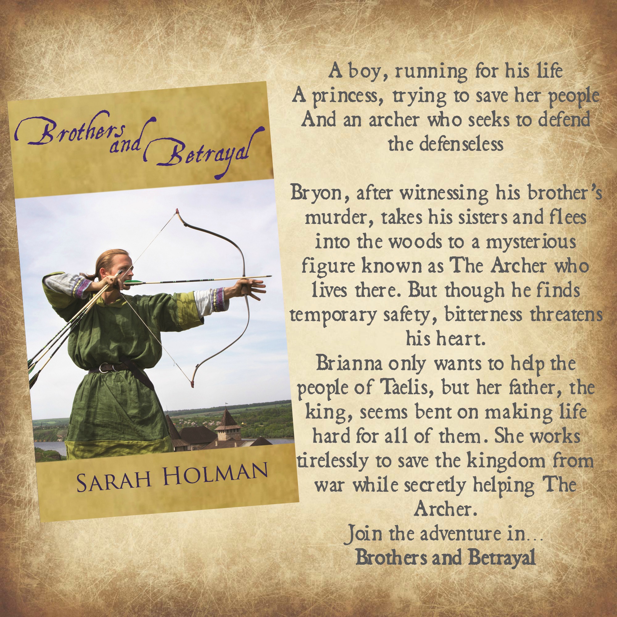 Today I have the privilege of hosting Sarah Holman and her newest book Brothers and Betrayal! It is the second in her Tales of Taelis series.